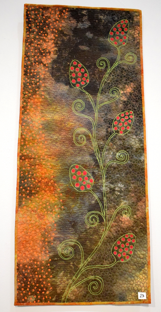 J'adore le travail qu'elle fait : souvent un mélange de broderies main et machine. Ses tissus teints et souvent imprimés sont magnifiques.
