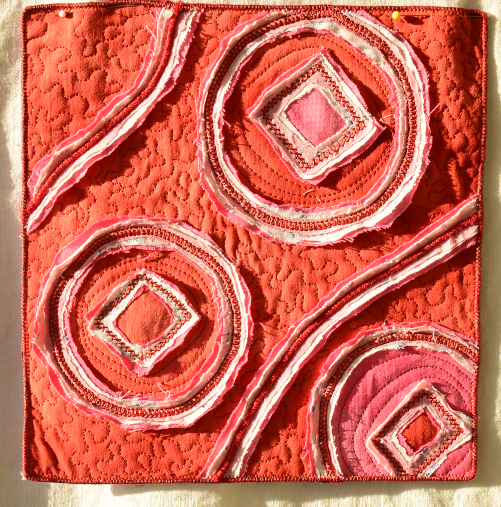Je crois qu'avec tous les petits ouvrages de ce challenge, je vais me faire un petit livre textile. Je pensais au départ, monter les différents petits tableaux sur un fond, mais c'est trop disparate, et je n'en ferai rien. Je vais donc attendre le déconfinement pour racheter de la feutrine pour la construction de mon album. Je sais que les magasins de tissus ont rouvert, mais je ne vais pas me précipiter dans la foule. Je laisse ça aux gens qui veulent des fournitures pour leurs masques...